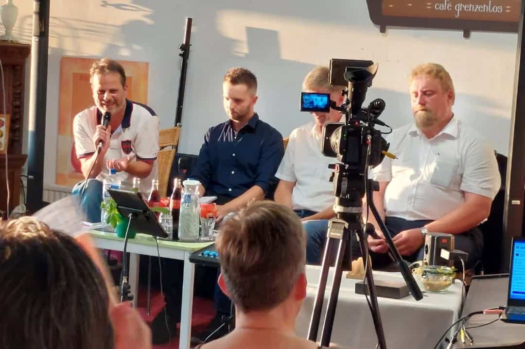 Die vier Bürgermeisterkandidaten stellten sich im Café Grenzenlos den Fragen von Moderator Van Loh und Publikum – live vor Ort und online via Dinkelwelle TV.