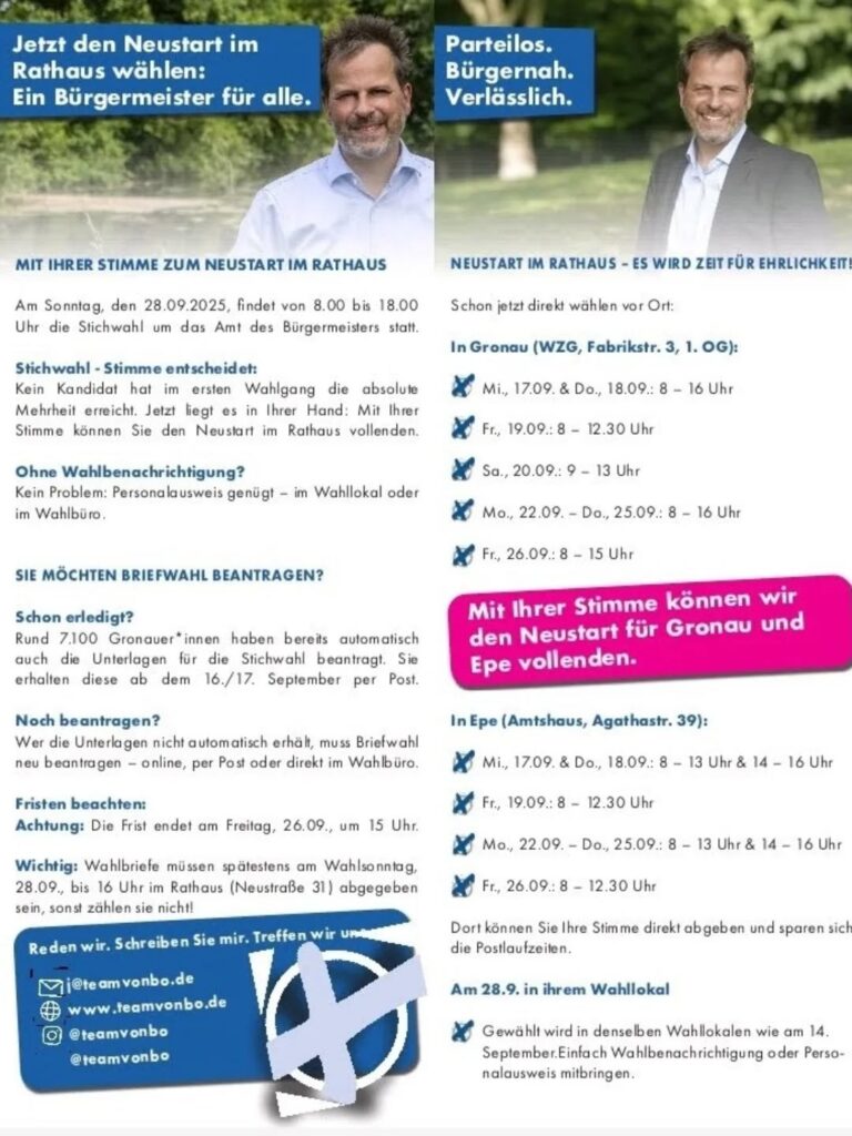 Am 28. September entscheiden Sie, die Bürgerinnen und Bürger aus Gronau und Epe, wer neuer Bürgermeister wird.