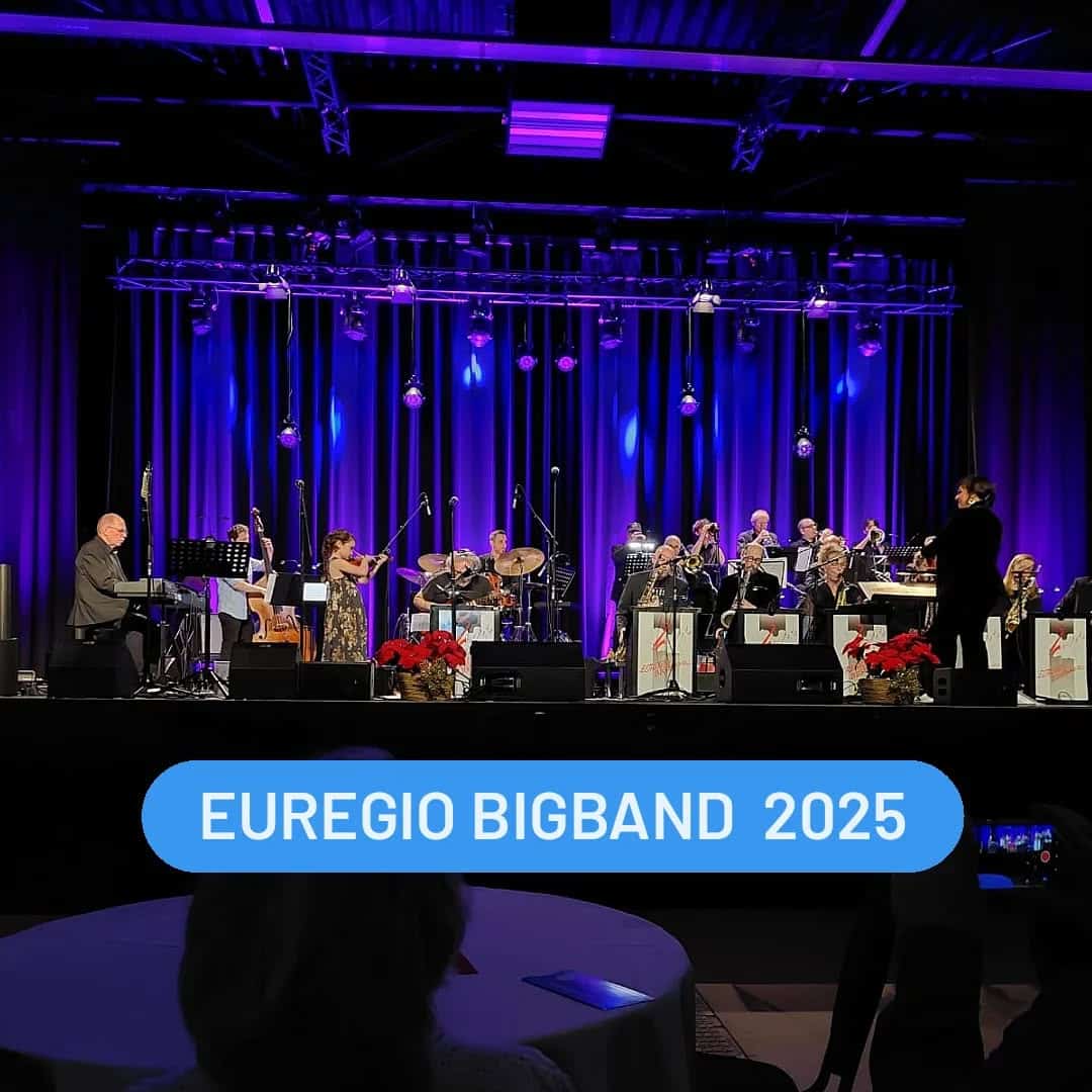 Dirigentin Natalie Schiemann und die Euregio Bigband – mit Musiker*innen aus Deutschland & den Niederlanden – haben die Gronauer Bürgerhalle beim Konzert „Swingin’ Together“ richtig zum Klingen gebracht.